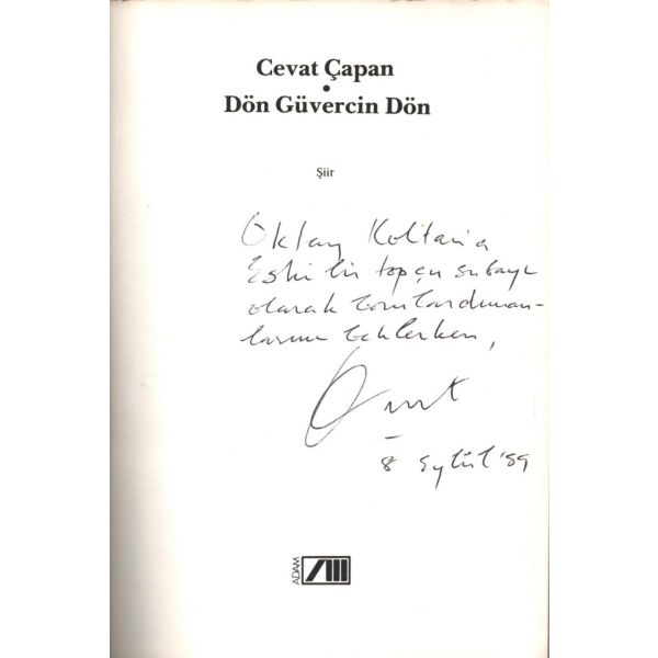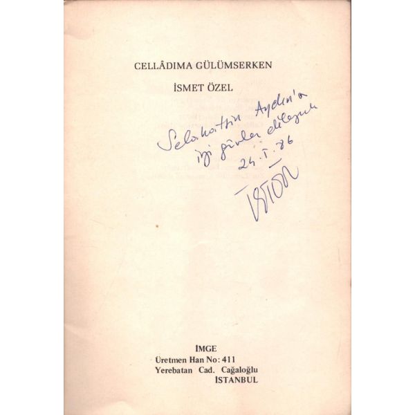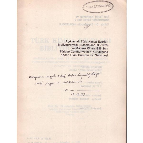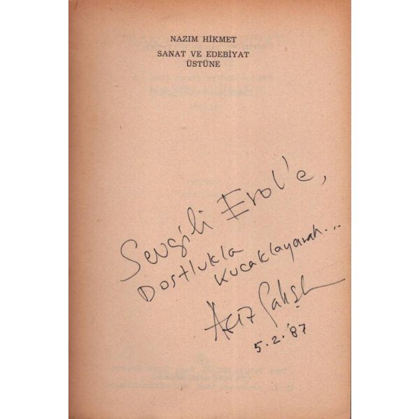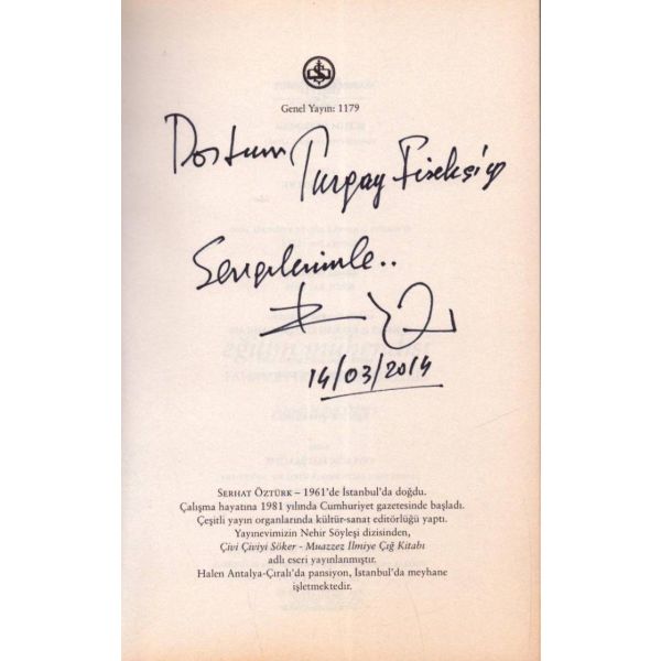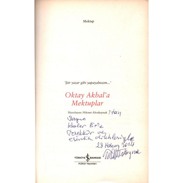 İthaf, "Hikmet Altınkaynak´tan Sayın Hacer Er´e teşekkür ve esenlik dilekleriyle 28 Kasım 2014" şeklindedir. *Kitabın editörü Ruken Kızıler Exlıbrıs´i mevcuttur.
