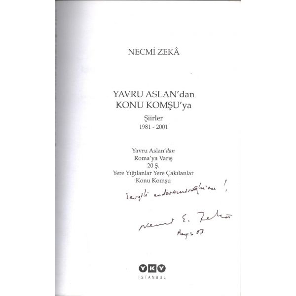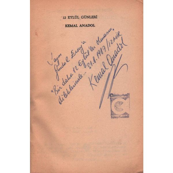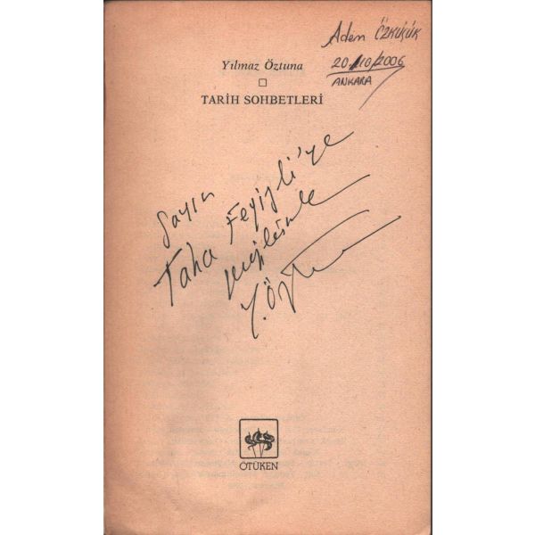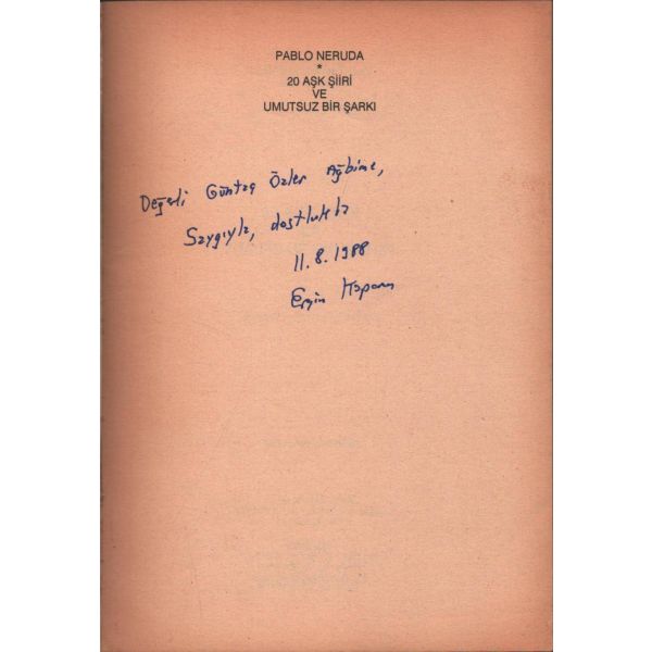 İthaf, " Aziz Dost Hayri Erdoğan´a sevgiler selamlar 198?" şeklindedir.