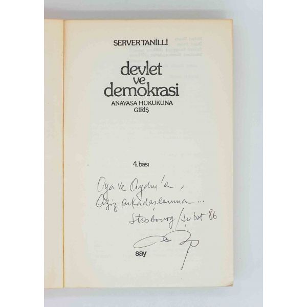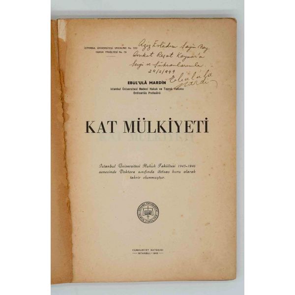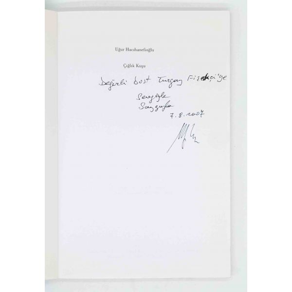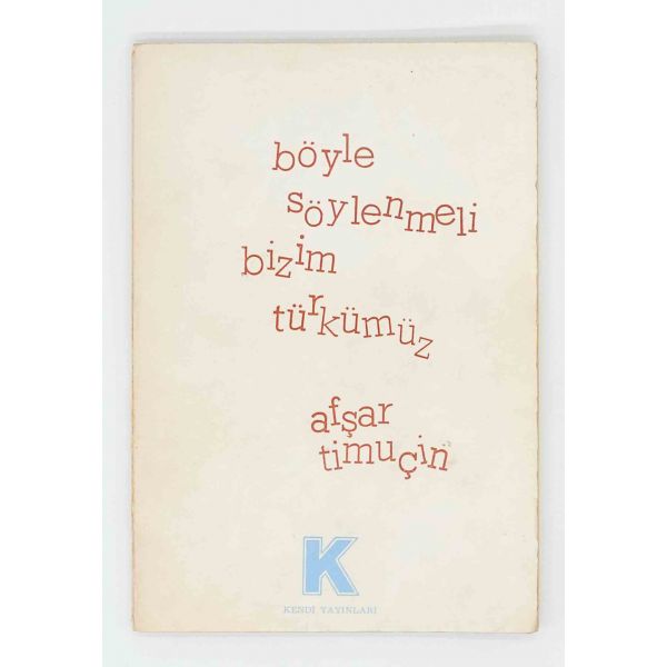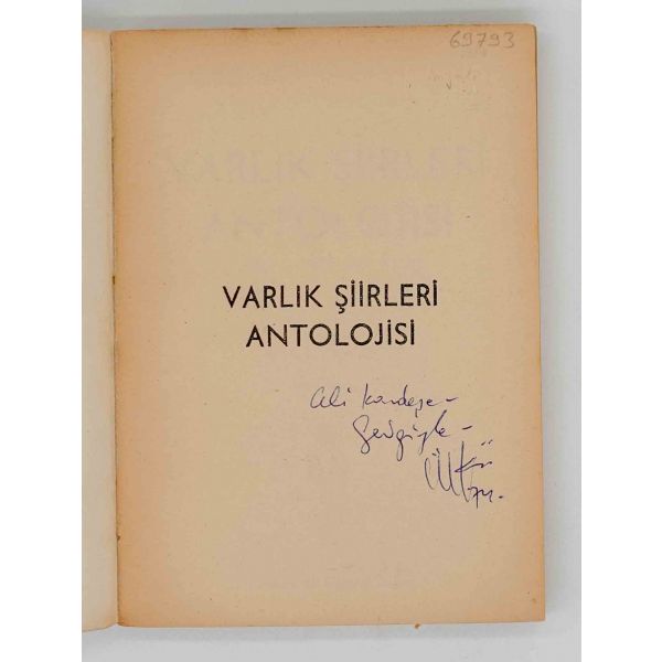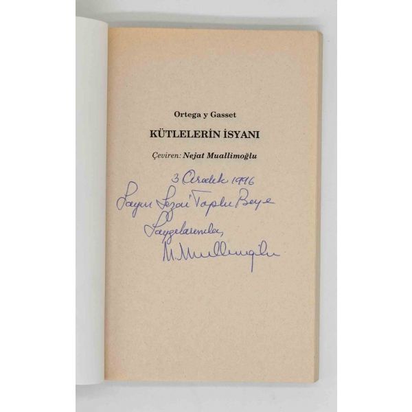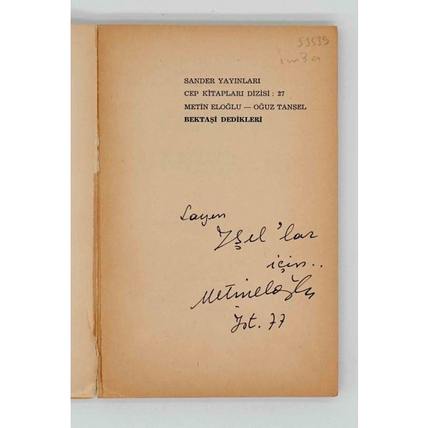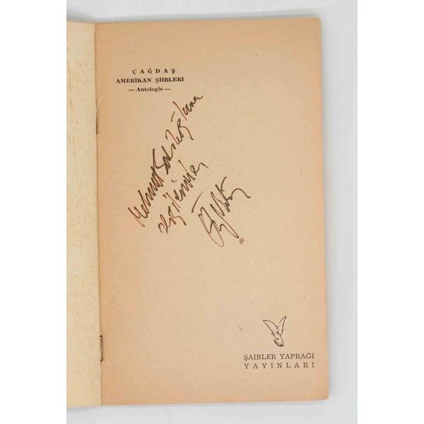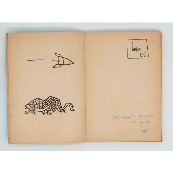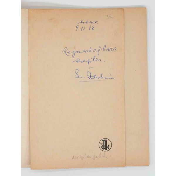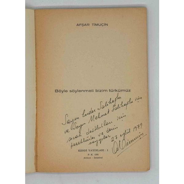 İthaf, "Sayın Ender Salihoğlu ve Sayın Mehmet Salihoğlu için sıcak dostlukları için teşekkürler ve derin saygılar. 27 Eylül 1979, A. Timuçun" şeklindedir. Bazı satırlar işaretlenmiş, altları çizilmiştir.
