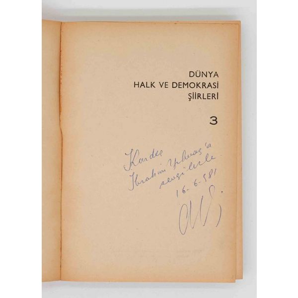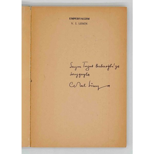 Lenin'in Marksizm'e en büyük teorik katkısı "EMPERYALİZM"in Cemal Süreya çevirisi... İthaf, "Sayın Turgut Berberoğlu´ya saygıyla. Cemal Süreya" şeklindedir.