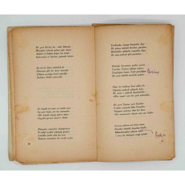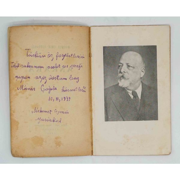 Milli Edebiyat akımının öncü şairi Mehmet Emin Yurdakul´un "Türk Gençliğine" hitap ettiği şiir kitabı... İthaf, "Türkün öz faziletlerini Türk ruhunun asalet ve şerefi yapan aziz dostum bay Münir Çağıla hürmetlerimle. 10.11.1939 Mehmet Emin Yurdakul" şeklindedir... Sayfaları ciltten ve birbirinden ayrılmıştır.