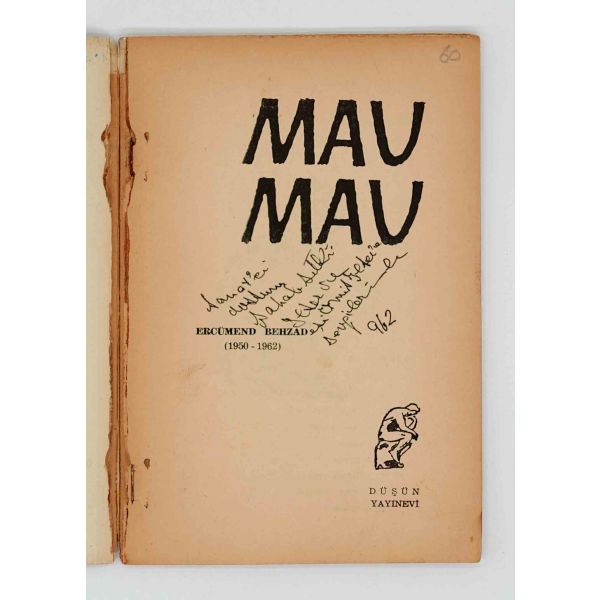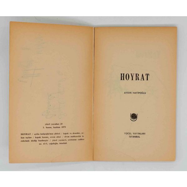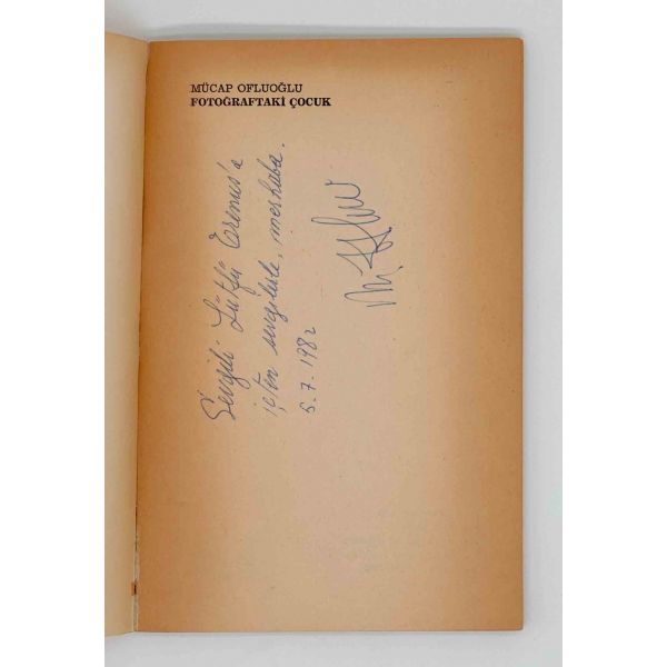 Tiyatro oyuncusu ve şair Mücap Ofluoğlu´nun yayımlanan ilk şiir kitabı... İthaf, "Sevgili Lütfü ...´a içten sevgilerle, merhaba. 5.7.1982, M. Ofluoğlu" şeklindedir.