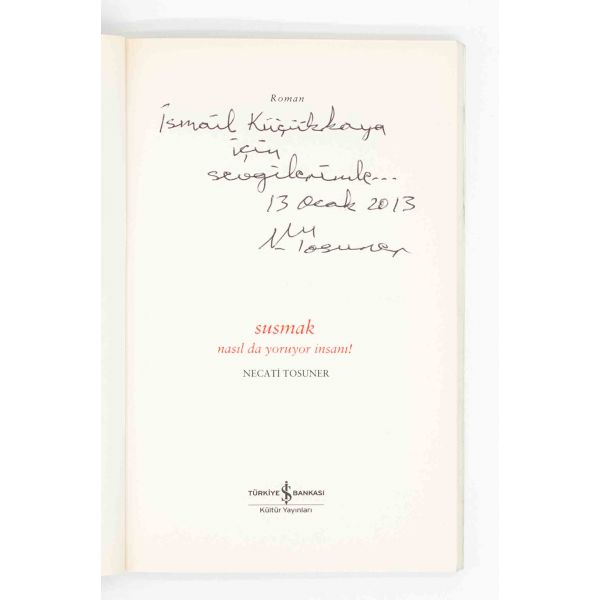 Necati Tosuner´in yazarlığının 50. yılında okurlarla buluşturduğu romanı... İthaf, "İsmail Küçükkaya için sevgilerimle... 13 Ocak 2013, N. Tosuner" şeklindedir.
