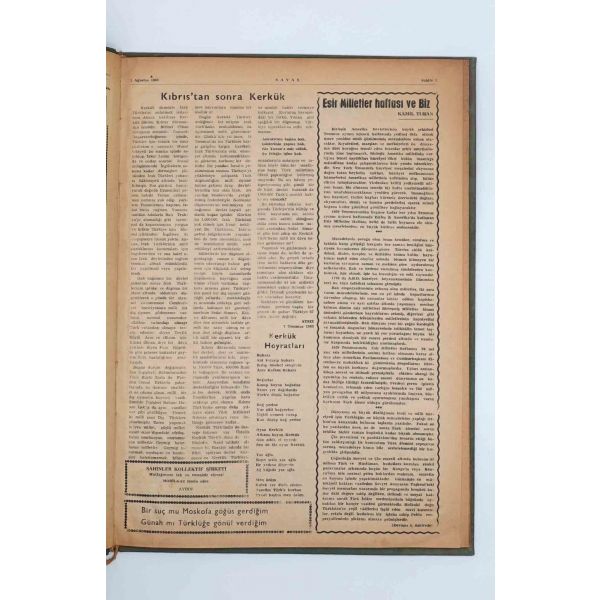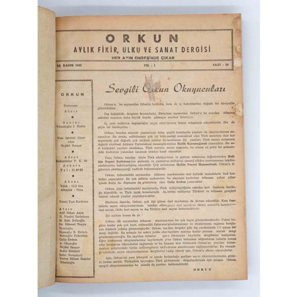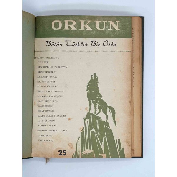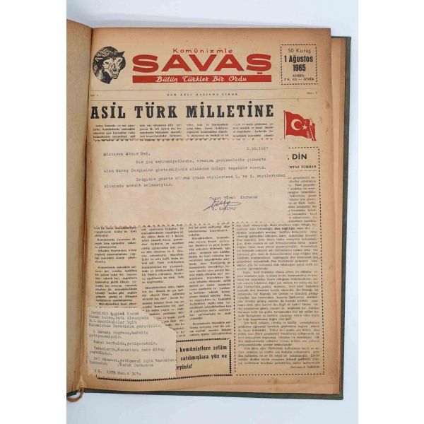 İzmir'de çıkarılan derginin yazarları arasında Hasan Oraltay, Necdet Sançar, Hayrani Ilgar gibi Türkçü isimler yer alıyor. Cildin ilk sayfasına Hasan Oraltay´ın ıslak imzasını havi daktilo bir metin iliştirilmiş: "Muhterem Münir Beğ, Bir çok mahrumiyetlerle, arasıra gecikmelerle çıkmakta olan Savaş Dergisine gösterdiğiniz alakadan dolayı teşekkür ederiz. Derginin gazete olarak çıkan sayılarının 1. ve 3. sayılarından elimizde mevcut kalmamıştır. Tanrı Türkü Korusun, H. Oraltay"
