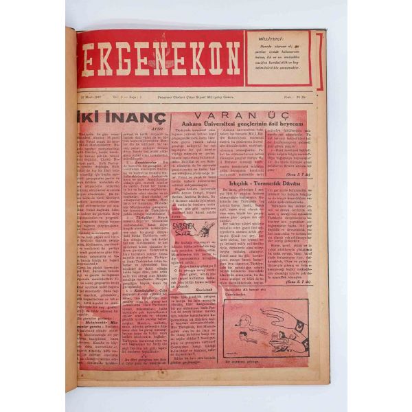 Türkçülerin 1944 yılında yargılanıp hüküm giymelerinin ardından çıkarılan ilk dergilerden biri olan Ergenekon'un yazarları arasında; Nihal Atsız, Nurullah Barıman, İsmet Rasin Tümtürk, Fethi Tevetoğlu, M. Zeki Souoğlu gibi isimler yer alıyor.