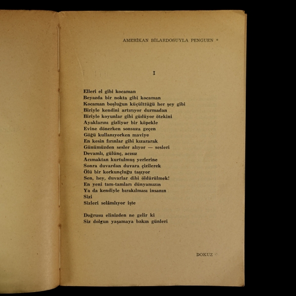 Ünlü tiyatro ve sinema sanatçısı Oben Güney'in, kendi desenleriyle birlikte, kendi imkânlarıyla fotokopi usulüyle yayımladığı yegâne şiir kitabı... "Sayın Nurullah Tilgen´e en içten saygılarımla" ithafıyla imzalanmıştır.