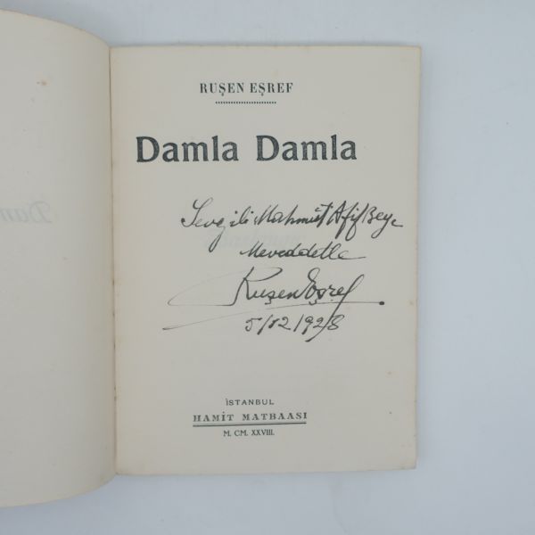 "Sevgili Mahmut Atıf Bey'e, meveddetle, Ruşen Eşref, 5/12/1928"