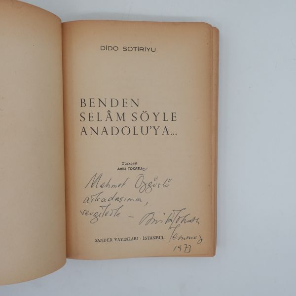 "Değerli Hikâyeci Orhan Duru´ya sevgiyle" ithafıyla 21 Şubat 1963 tarihinde imzalanmıştır.