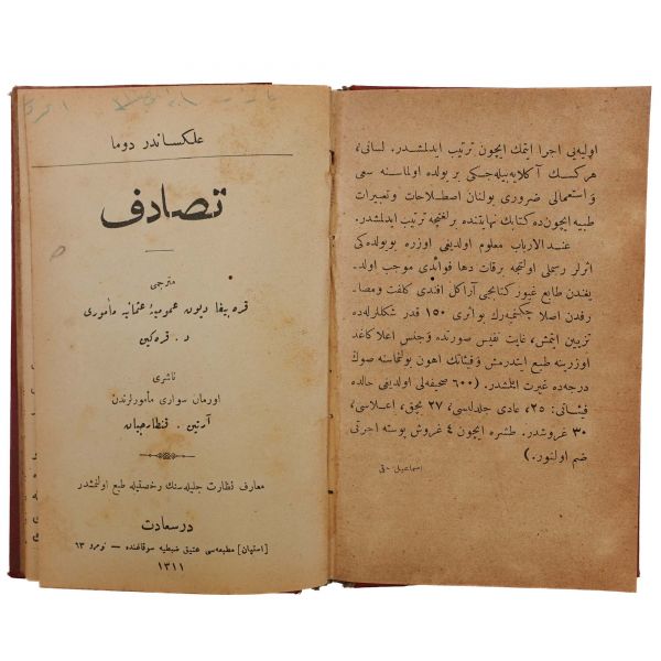 MUALLİM NACİ EFENDİ, İsmail Hakkı, 1311, Nişan Berberyan Matbaası, 116 sayfa, TESADÜF, Aleksandr Duma, (çeviren: D. Karakin), 1311, İstepan Matbaası, 60 sayfa, SANİHAT, Mehmed Emin b. Mazhar, 1311, Mahmud Bey Matbaası, 76 sayfa....