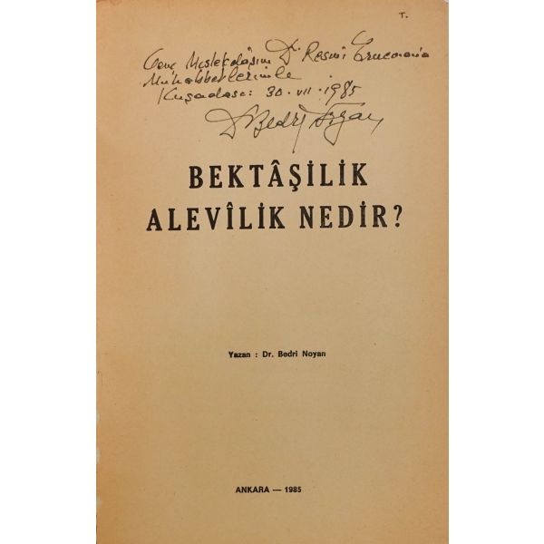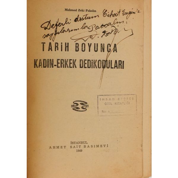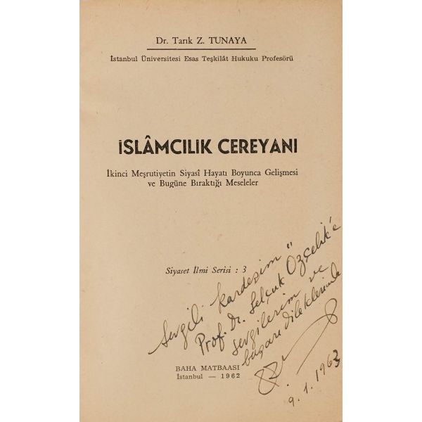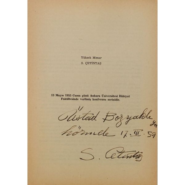 "Sevgili kardeşim Prof. Dr. Selçuk Özçelik´e sevgilerim ve başarı dileklerimle" ithafıyla 9 Ocak 1963 tarihinde imzalanmıştır.