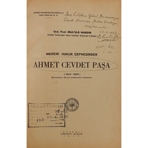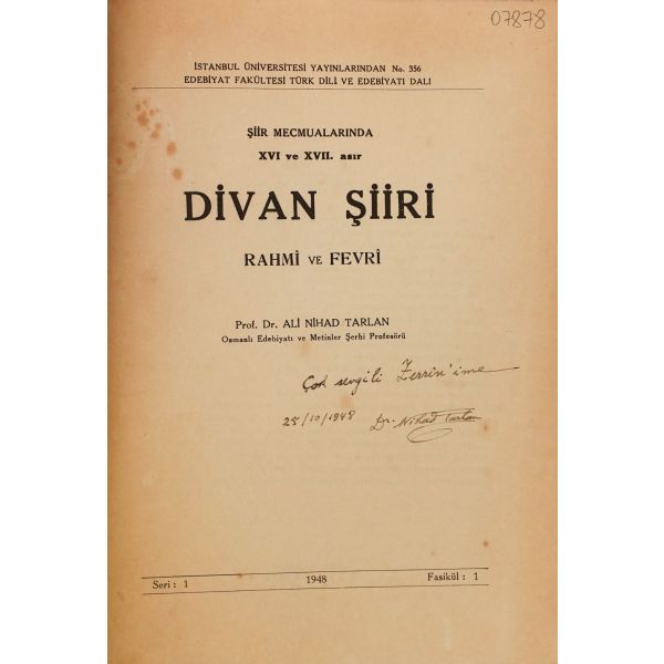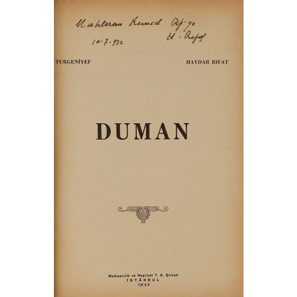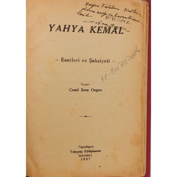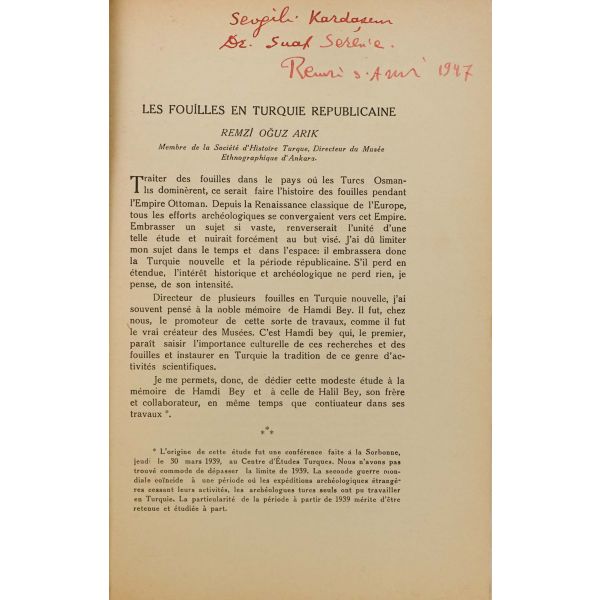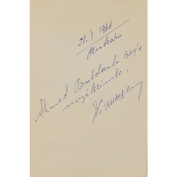 "Sevgili kardeşim Dr. Suat Sezen´e" ithafıyla 1947 senesinde imzalanmıştır.