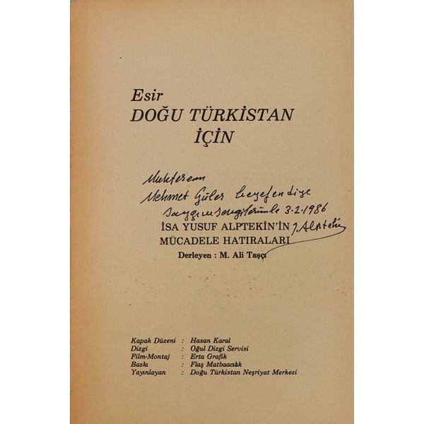 "Muhterem Mehmet Güler Beyefendi´ye saygı ve sevgilerimle" ithafıyla 3 Şubat 1986 tarihinde imzalanmıştır.