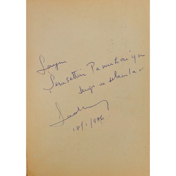 "Sayın Şemsettin Pamukçu´ya sevgi ve selamlar" ithafıyla 18 Ocak 1986 tarihinde imzalanmıştır.