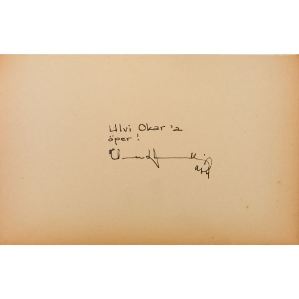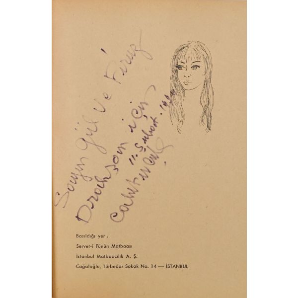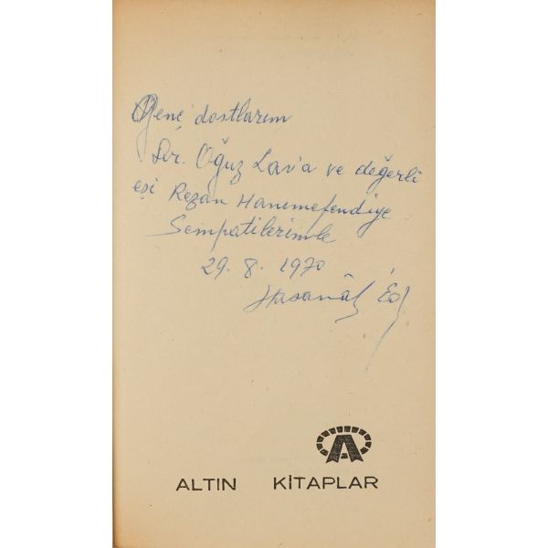 "Genç dostlarım Dr. Oğuzhan´a ve değerli eşi Rezan Hanımefendi´ye sempatilerimle" 29 Ağustos 1970 tarihinde imzalanmıştır.