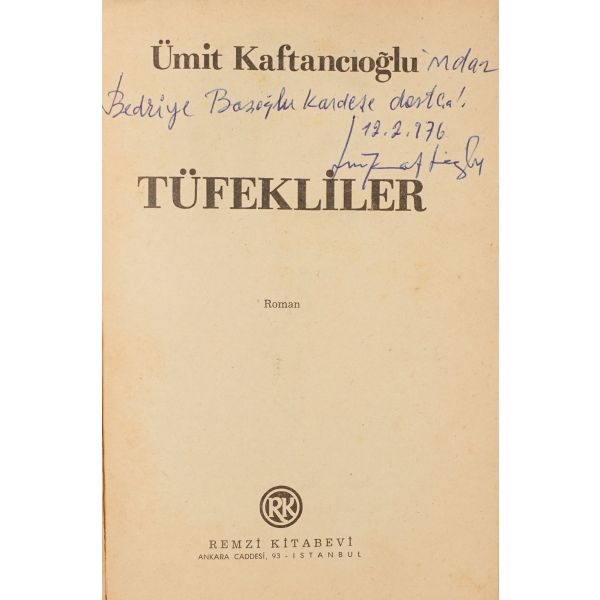 "Ümit Kaftancıoğlu´ndan Bedriye Başoğlu kardeşe dostça" ithafıyla 12 Şubat 1976 tarihinde imzalanmıştır.