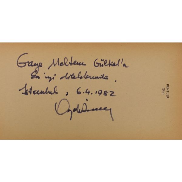 "Gaye Meltem Gürkal´a en iyi dileklerimle" ithafıyla 6 Nisan 1982 tarihinde imzalanmıştır.