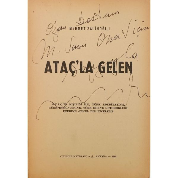 "Sayın Kemal Ateş´e sevgilerle" ithafıyla imzalanmıştır.