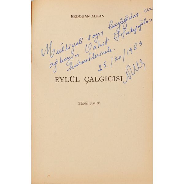 "Tülin ve Kürşat´a dostlukla" ithafıyla imzalanmıştır.