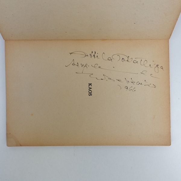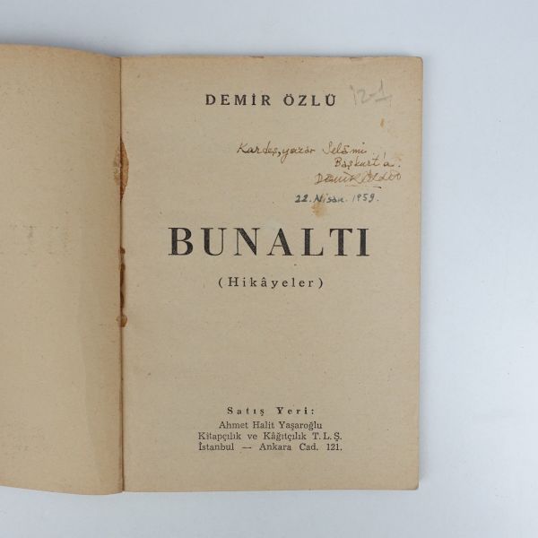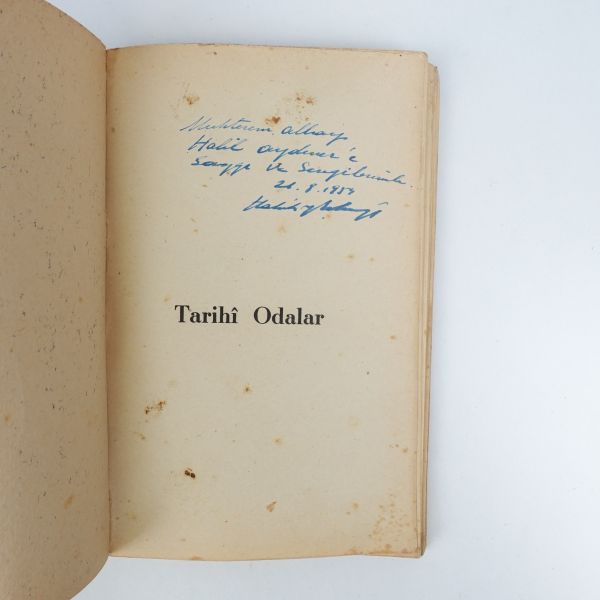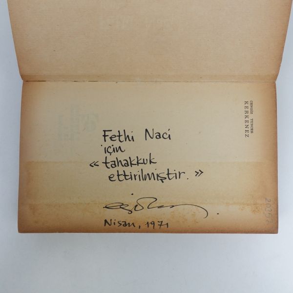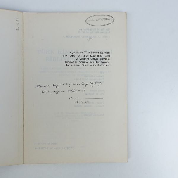 "Kitapşinas değerli sahaf Arslan Kaynardağ beye sevgi, saygı ve takdirlerimle." ithafıyla, 15 Ekim 1985 tarihinde imzalanmıştır. Kitabın ilk sayfasında Arslan Kaynardağ´ın kütüphane kaşesi yer almaktadır.