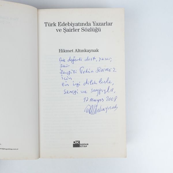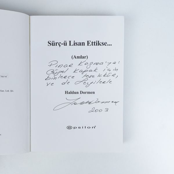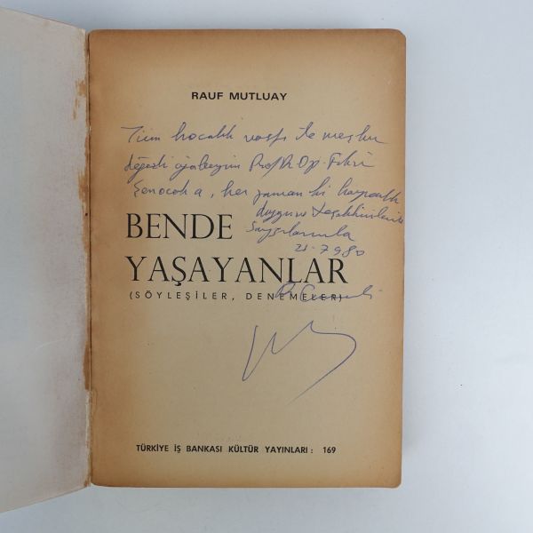 "Yazılarını merakla beklediğim ve zevkle okuduğum Ergun Hiçyılmaz´a 80 yaşındaki yazar meslekdaşından sevgi ve saygılarla." ithafıyla, 25 Eylül 1992 tarihinde imzalanmıştır.