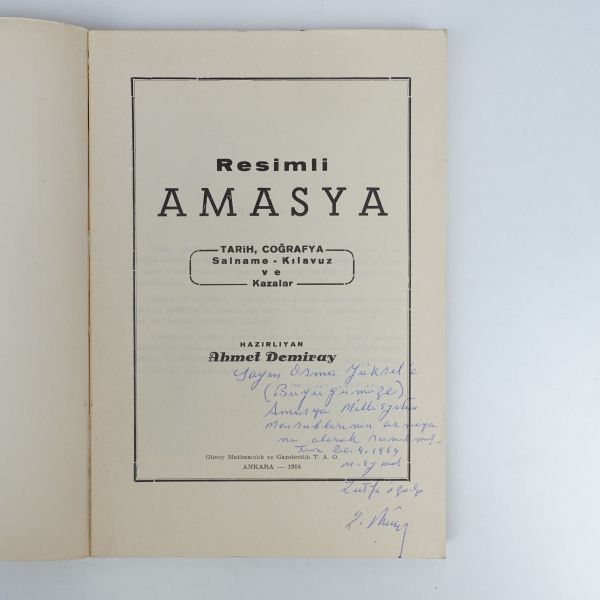 "Sayın Osman Yüksel´e (Büyüğümüze) Amasya Milli Eğitim mensublarının armağanı olarak sunulmuştur." ithafıyla, 20 Nisan 1964 tarihinde üç kişi tarafından imzalanmıştır.