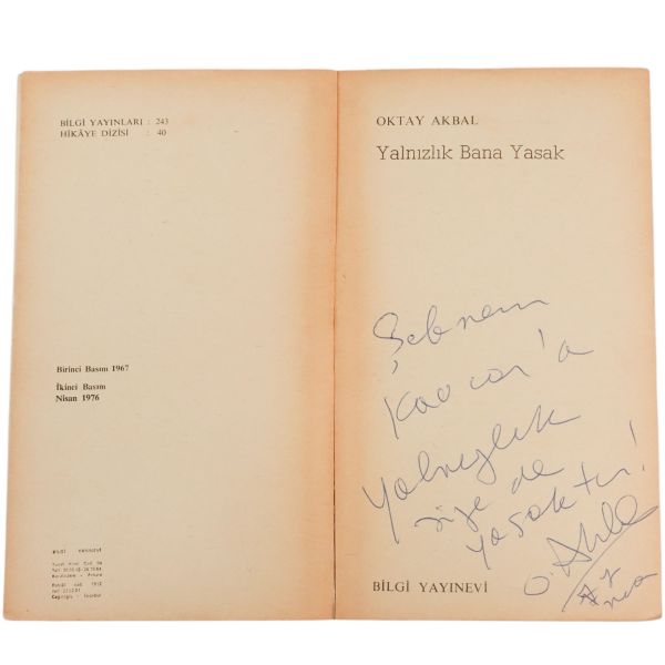 "Kubilay Köseoğlu´na selâm." ithafıyla, Nisan 1984 tarihinde imzalanan kitabın bir başka sayfasında, Attilâ İlhan tarafından Temmuz 1968 tarihinde imzalanmış ancak daha sonra üstü karalanmış bir ithaf yer almaktadır.