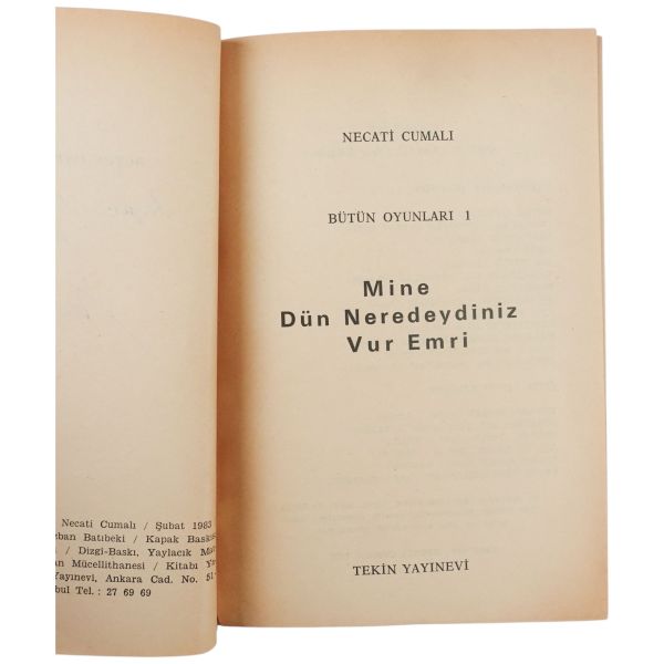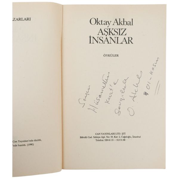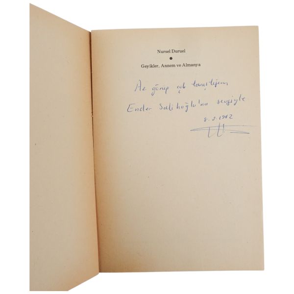 "Az görüp çok tanıştığım Ender Salihoğlu´na sevgiyle" ithafıyla 8 Mart 1982 tarihinde imzalanmıştır.