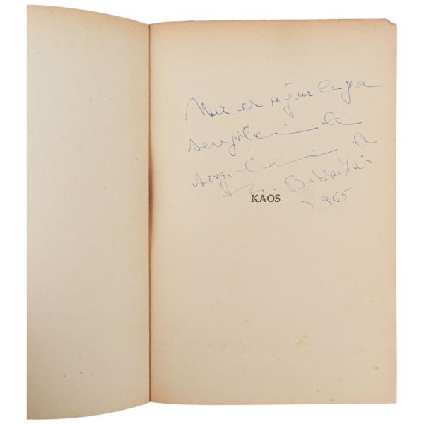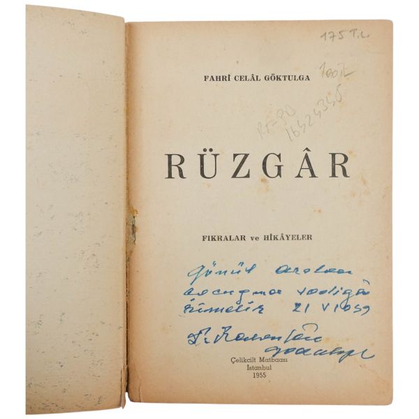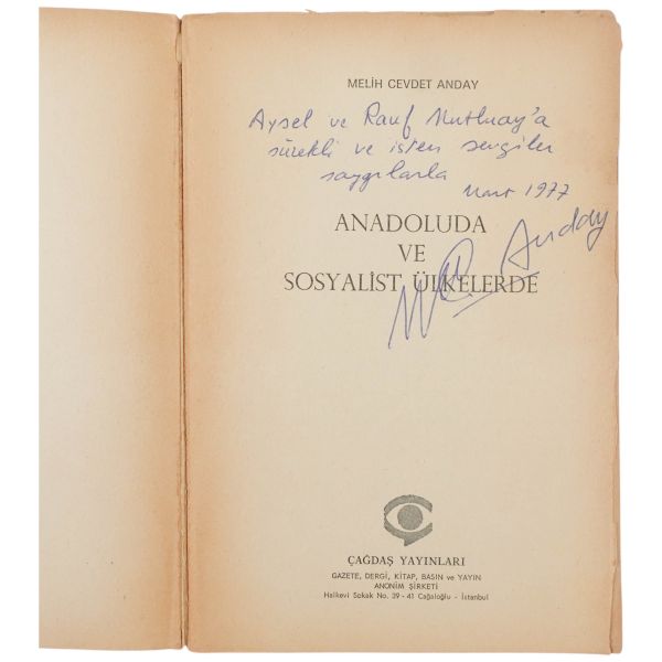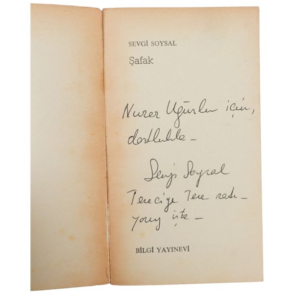 "Aysel ve Rauf Mutluay´a sürekli ve içten sevgiler saygılarla" ithafıyla Mart 1977 tarihinde imzalanmıştır.