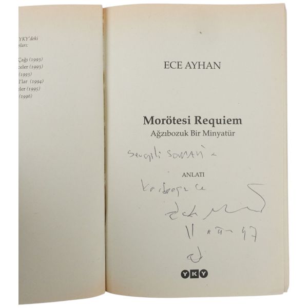 "Sevgili Nurer Uğurlu için her zaman dostlukla" ithafıyla 10 Eylül 1990 tarihinde imzalanmıştır.