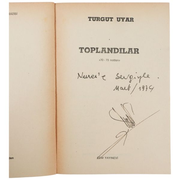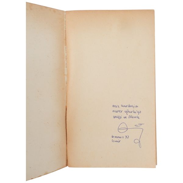 "Aziz kardeşim Nurer Uğurlu´ya sevgi ve özlemle" ithafıyla Temmuz 1972 tarihinde imzalanmıştır.