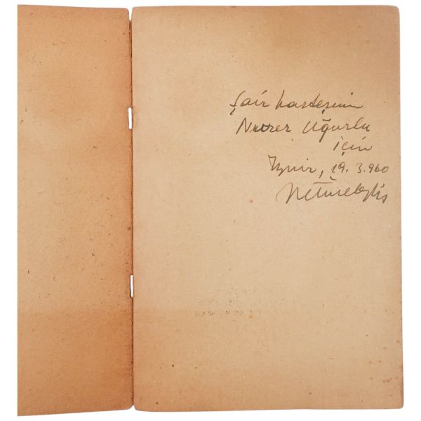 "Nurer Uğurlu´ya sevgi, övgü, şiir" ithafıyla 1961 senesinde imzalanmıştır.