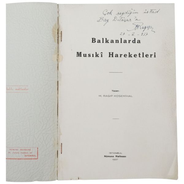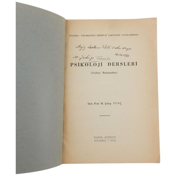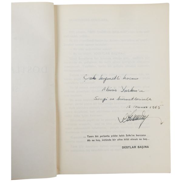 "Çok kıymetli hocam Münir Yarkın´a sevgi ve hürmetlerimle" ithafıyla 12 Temmuz 1965 tarihinde imzalanmıştır.