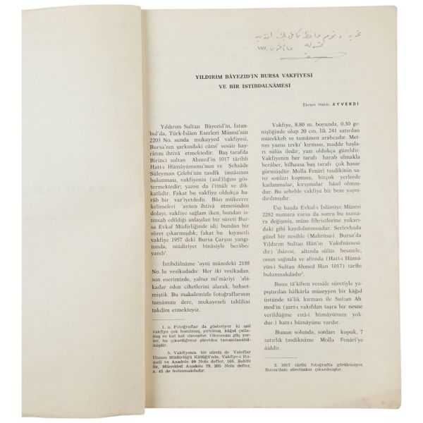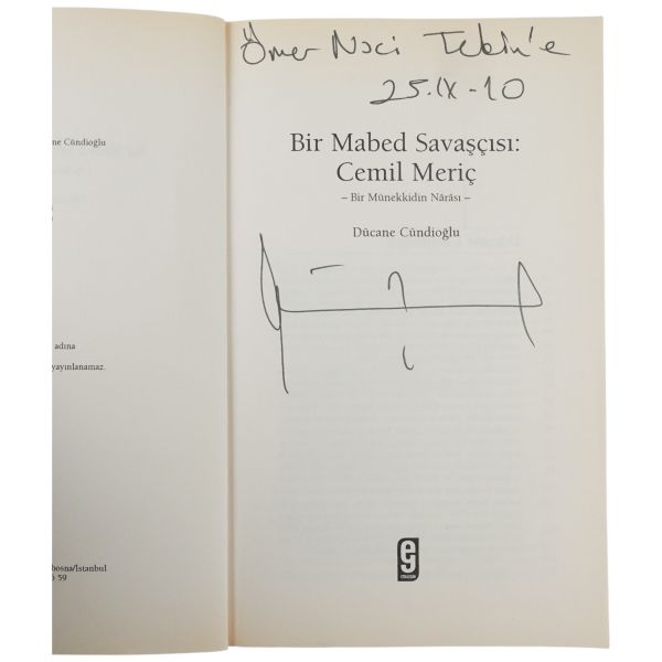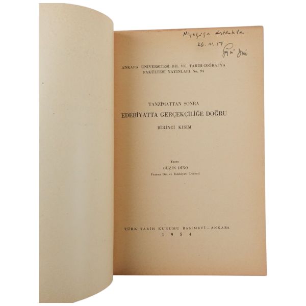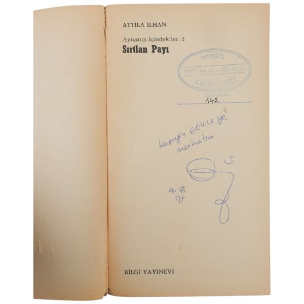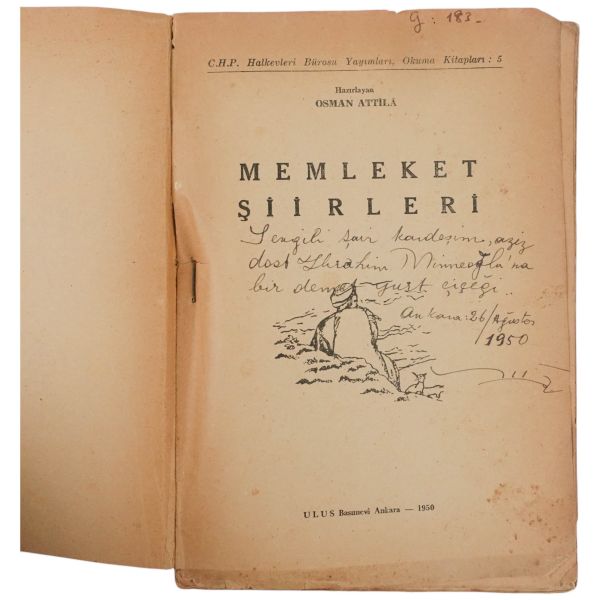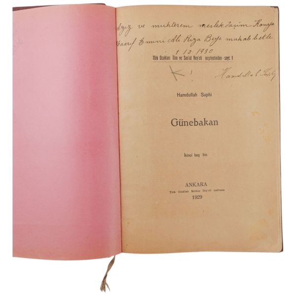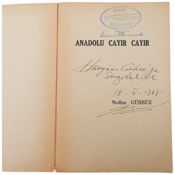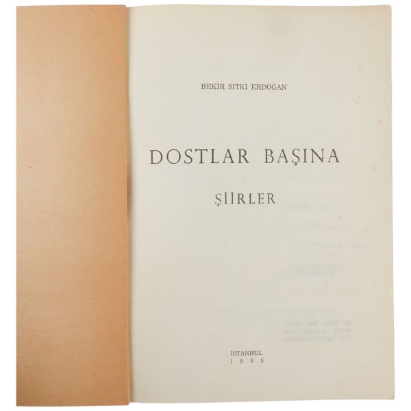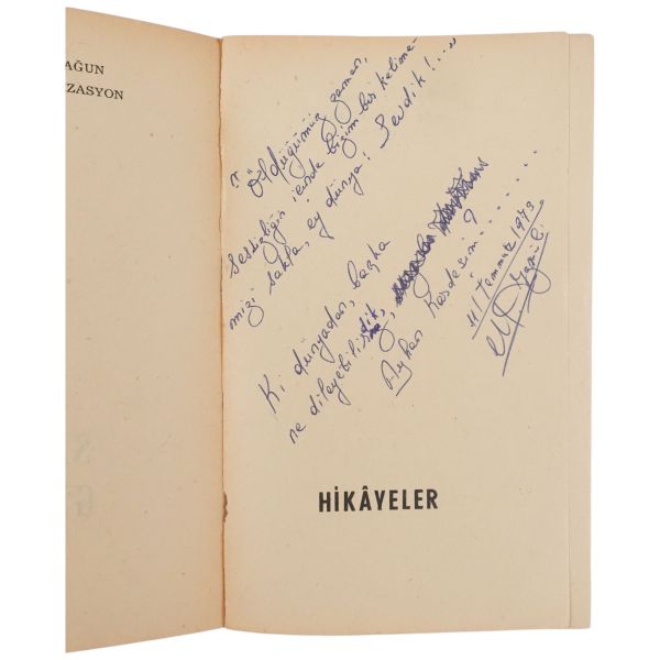 "Bekir Karayel´e saygılarımla." ithafıyla, 21 Ağustos 1973 tarihinde imzalanmıştır. Orijinal kapakları korunarak yakın tarihte ciltlenmiştir. Orijinal ön kapağında yer alan yırtık bantla tamir edilmiştir.