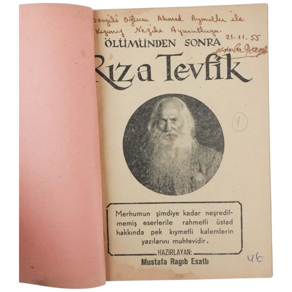 Mustafa Ragıp Esatlı´nın, Rıza Tevfik Bölükbaşı´nın eserlerinden örnekler ve Rıza Tevfik hakkında çeşitli yazarlar tarafından kaleme alınmış yazıların derlendiği eseridir.