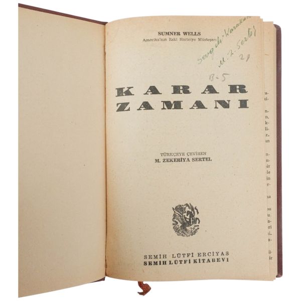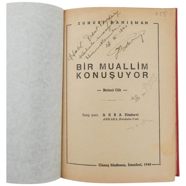 "Sayın Genel Sekreterimiz Bay Memduh Şevket Esendal´a: En derin saygılarımla." ithafıyla, 27 Mart 1943 tarihinde "Muallim" ibaresiyle imzalanmıştır. İmza sahibi belirsizdir. Kitaptaki katlanır harita ekleri eksiksizdir.
