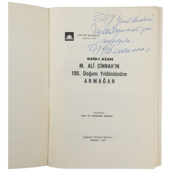 "THY Genel Müdürü Nurettin Erguvanlı´ya saygılarla." ithafıyla, 27 Temmuz 1977 tarihinde imzalanmıştır. Kitabın arka kapağına yapışık zarf içinde katlanır Pakistan haritası yer almaktadır. *Metin bölümü ciltten ayrılmıştır.