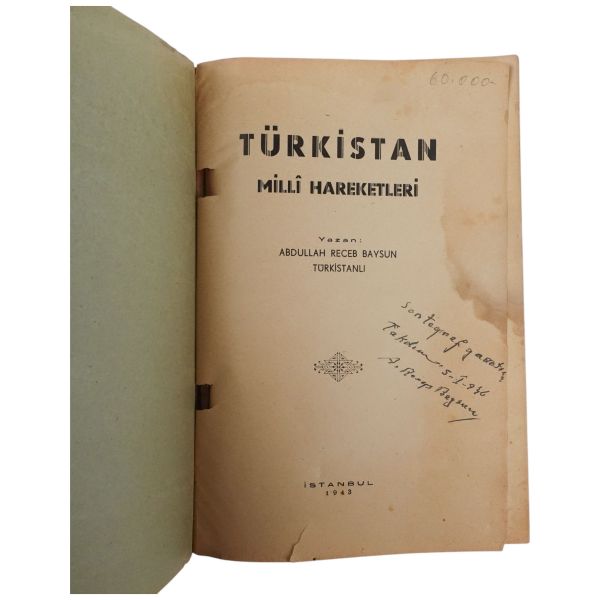 "Son Telgraf gazetesine takdim." ithafıyla, 5 Ocak 1946 tarihinde imzalanmıştır. Kapağında da belirtildiği gibi içerisinde 1 Türkistan haritası (katlanır formda), 35 resim ve 18 vesika vardır. Arka kapağına "Alaeddin Klişe Fabrika ve Matbaası" ibareli gofre vinyet yapıştırılmıştır.
