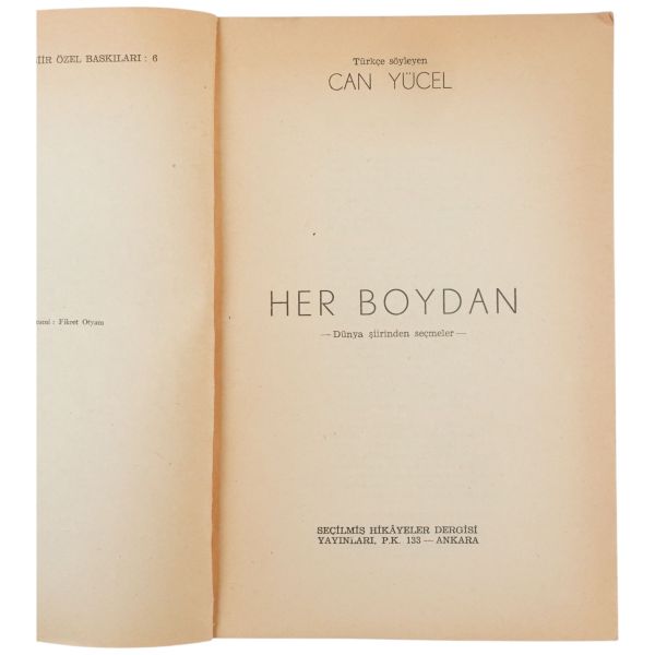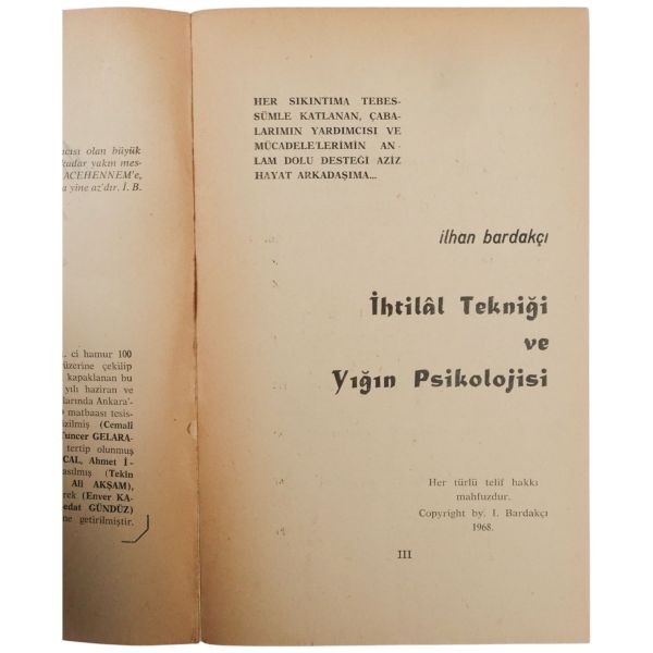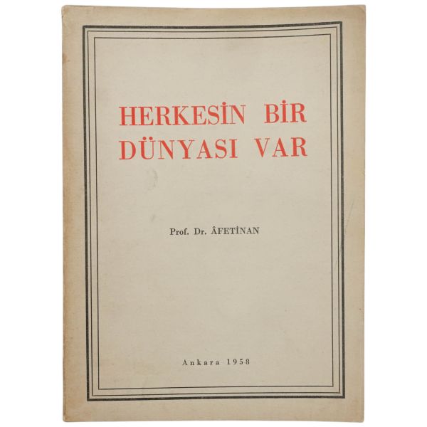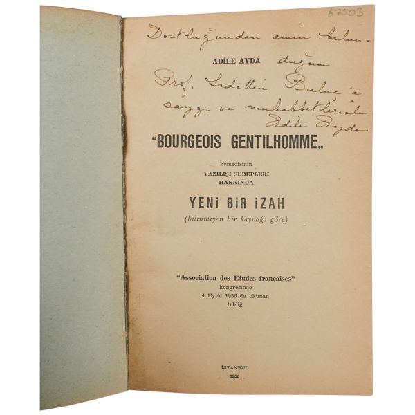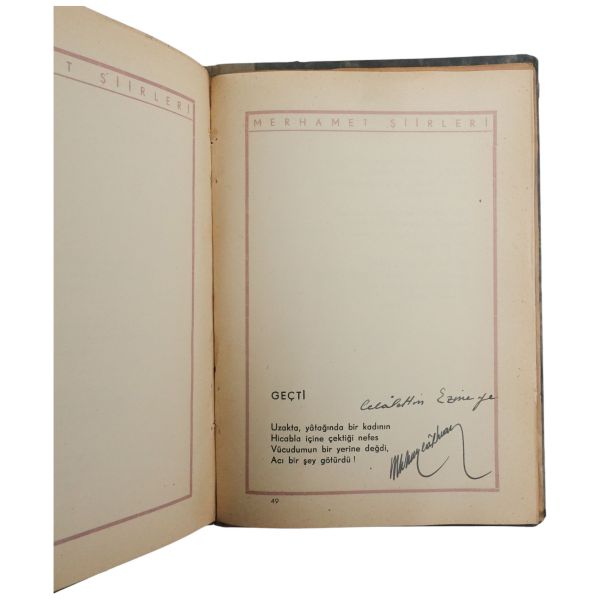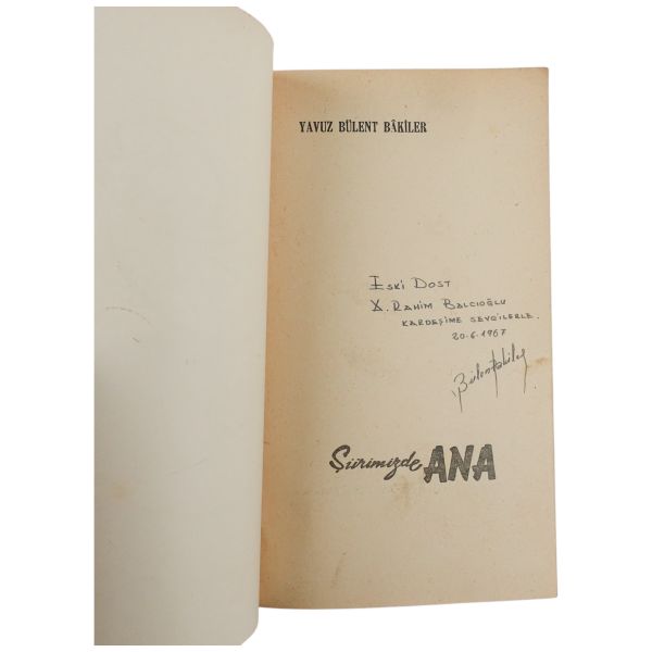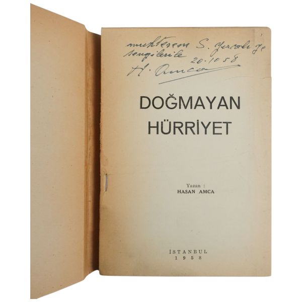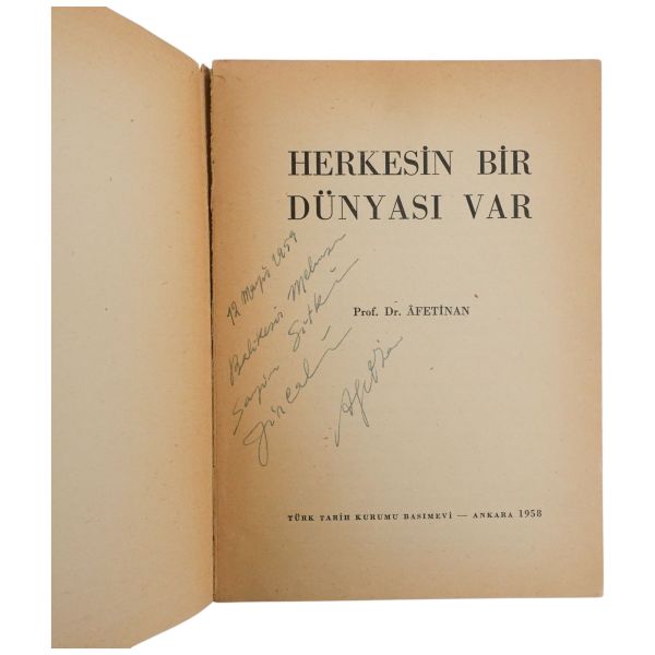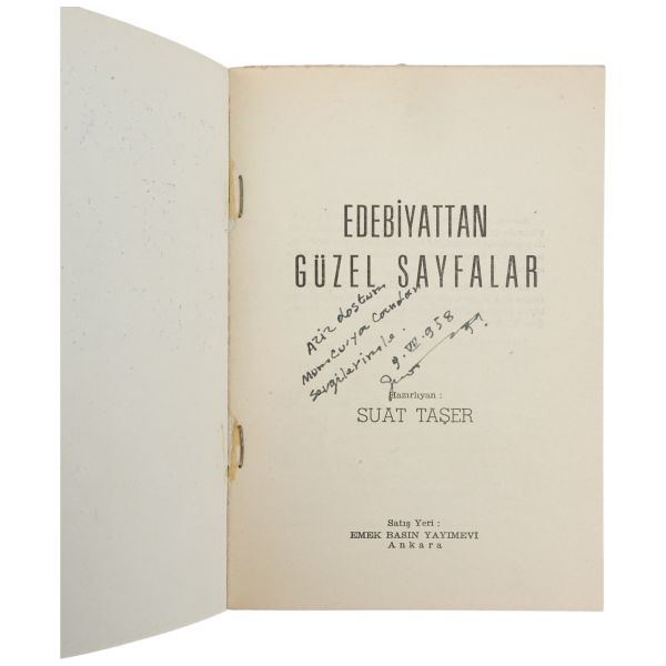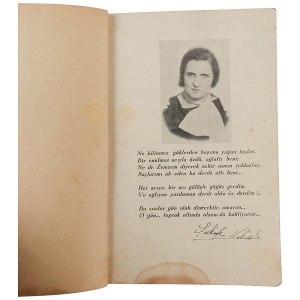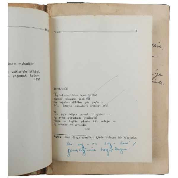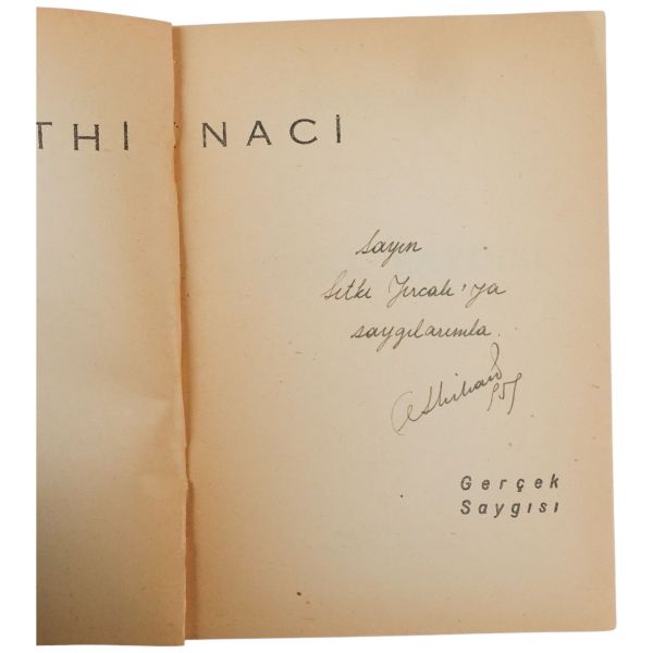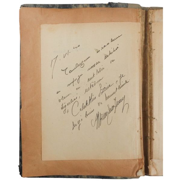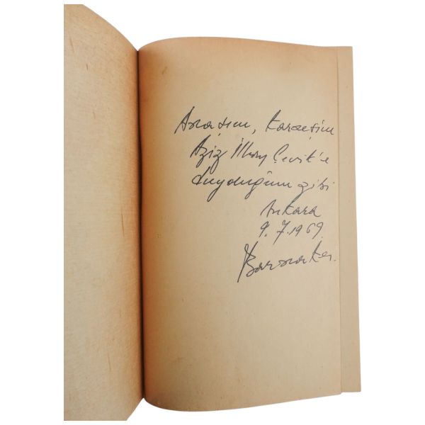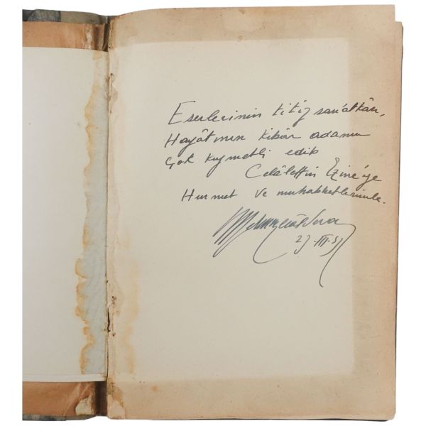 "Halasının eserlerine ilgi ve sevgi gösteren kıymetli ... Nefser(?)´ya, en iyi dileklerimle." ithafıyla, 7 Mart 1959 tarihinde imzalanmıştır. Kitabın sonunda, yeğeni tarafından kaleme alınmış eleştirel bir not mevcuttur.