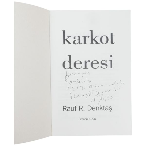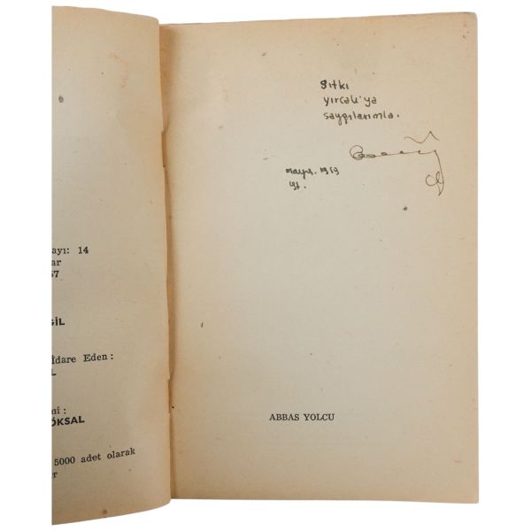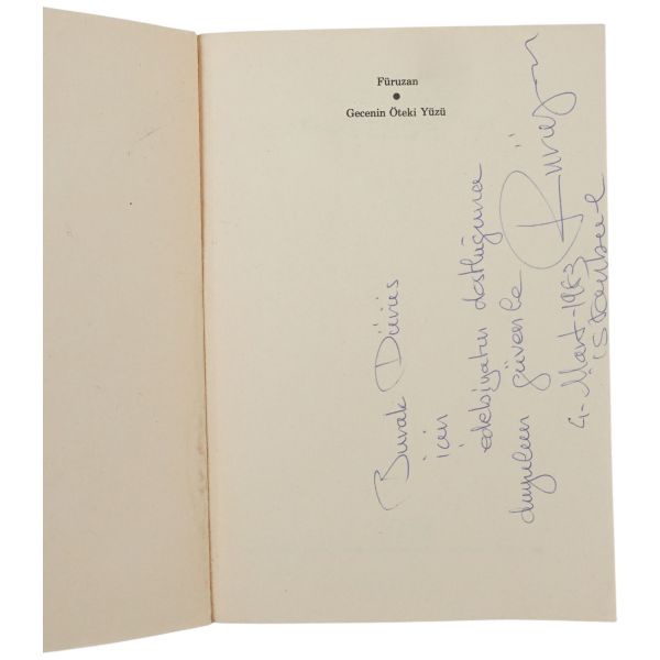 "Değerli dost yazar Hüseyin Kılıç´a yüreğimin dolusu sevgiyle" ithafıyla 1 Şubat 1982 tarihinde imzalanmıştır.
