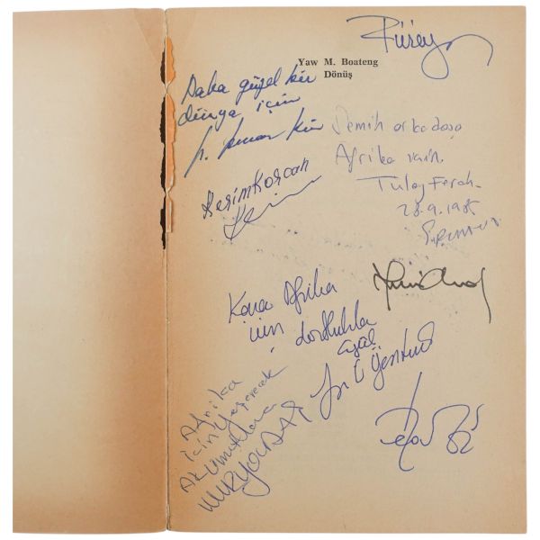 Kitabın ilk sayfalarında, Kadıköy sahaflarından Semih Susan adına kaleme alınmış çok sayıda ithaf ve imza mevcuttur. Kaynak Yayınları´nın Afrika Dizisi´nden çıkan kitabın yayımlanmasında emeği geçtiğini düşündüğümüz Semih Susan´a hitaben kaleme alınmış ithaflarda öne çıkan cümlelerden bir kısmı: "Dünyada açlık Afrika kumundan çok... Sorumsuzluk da...", "Afrika için yeşerecek ak umutlara.", "Semih arkadaşa Afrika için.", "Semih´e, kara Afrikalılar adına teşekkür, sevgi ve dostlukla."
