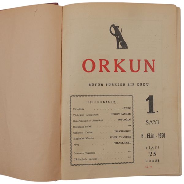 Türk milliyeçiliği düşüncesinin belki de en keskin kalemi Hüseyin Nihal Atsız´ın başyazarı olduğu haftalık Türkçü dergi Orkun´un ilk 54 sayısı tek lotta.