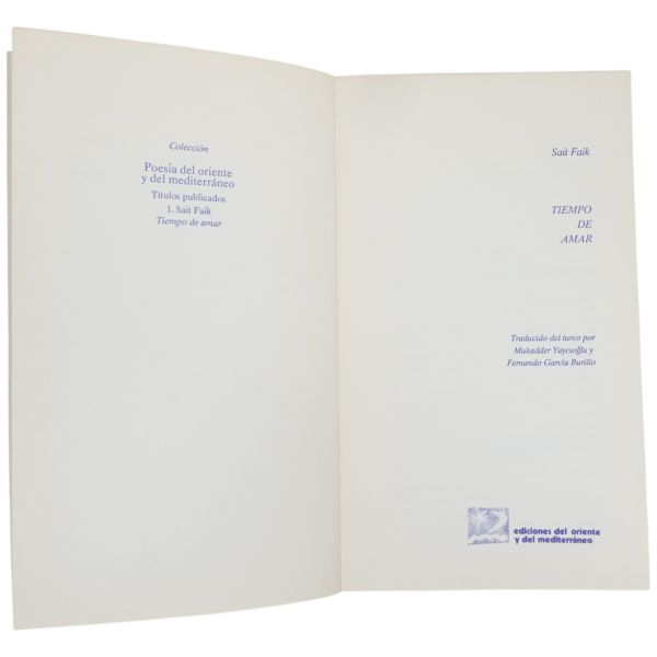 Durum öykücülüğünün Türk edebiyatındaki en önemli temsilcilerinden Sait Faik Abasıyanık´ın Şimdi Sevişme Vakti adlı şiir kitabının İspanyolca´ya çevirisidir.