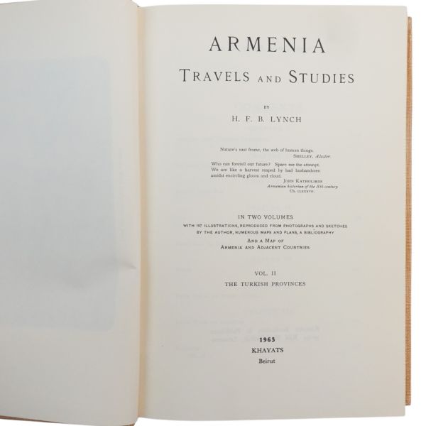 İngiliz iş adamı ve gezgin Lynch´in tarihi Ermenistan bölgesine seyahatidir. Eser tamamlandığında muasırlarınca büyük ses getirmiş ve birçok olumlu eleştiri almıştır. Eser hem 1915 Olayları ve Ermenistan´ın kuruluşundan önce Ermenilerin durumunu göstermesi itibariyle hemde mufassal ve görseeli olması sebebiyle bu alanda önemli bir eserdir.