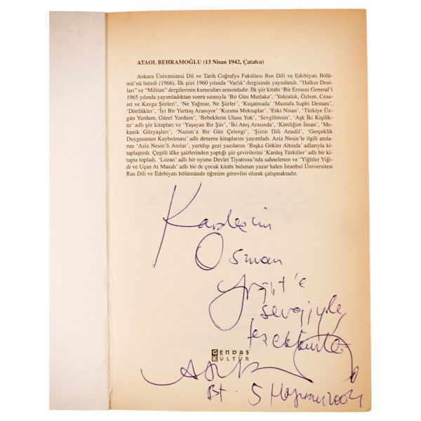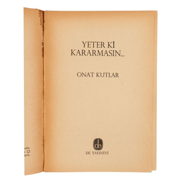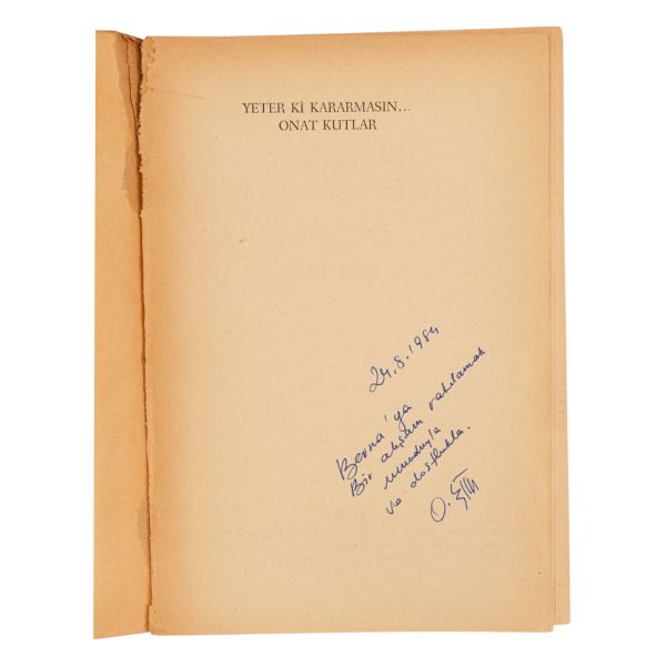 30 Aralık 1994´te Cafe Marmara´da gerçekleşen bombalı terör saldırısında yitirdiğimiz; hikâyeci, şair, senarist ve denemeci Onat Kutlar´ın çeşitli konulardaki mektuplarını ihtiva eden eser.