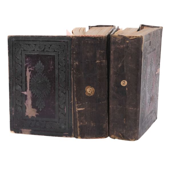 *Sırtların ön kapak tarafında küçük açılmalar vardır. İki cildin de ilk yapraklarında katlanma kaynaklı küçük yırtıklar mevcuttur. 3. cildin son sayfasında sırtı hafif açılmıştır ve sayfada küçük yırtıklar vardır. Fotoğrafları inceleyerek pey veriniz.
