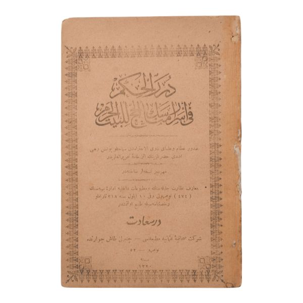 *Sırtı eserden ayrıktır. ilk ve son sayfaları eserde değil kapak taraflarına bağlı kalmıştır. İç kapak kağıtlarında yırtıklar vardır, sayfa uçları ve kenarlarında küçük hasarlar mevcuttur.