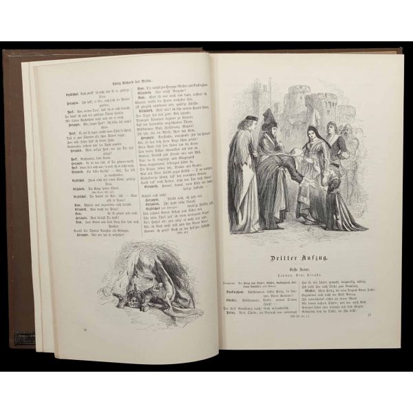 Zengin resimlerle süslenmiş Shakespeare´in oyunları... 41 ciltten oluşan bu eserde 7.18.16. 3. 26. 34. 21. 10. 23. 25. 8. ciltleri mevcuttur. Hamlet kitabının sırtı yorgun, King John kitabının arka kapağı eksiktir.