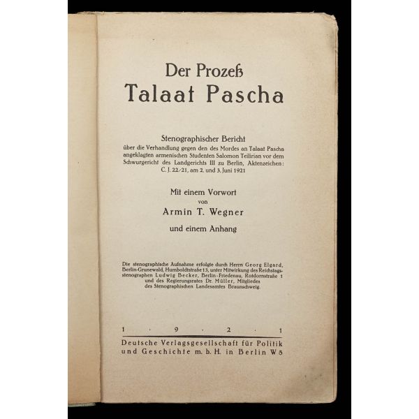 15 Mart 1921'de düzenlediği suikastla Talat Paşa´yı öldüren Ermeni komitacı Soğomon Tehliryan´ın Berlin 3. Bölge Mahkemesi'nde görülen duruşmasının stenografik (şifreli) yöntemle tutulmuş raporunu içeren kitap...