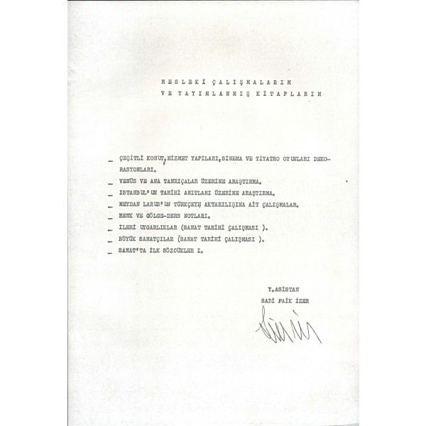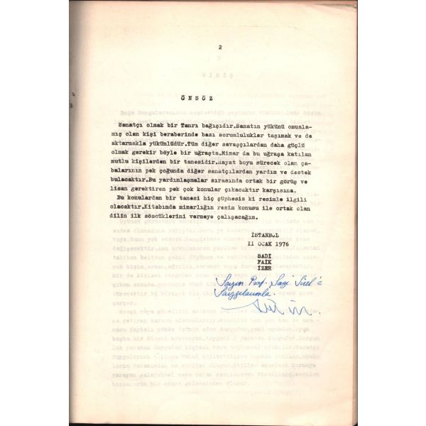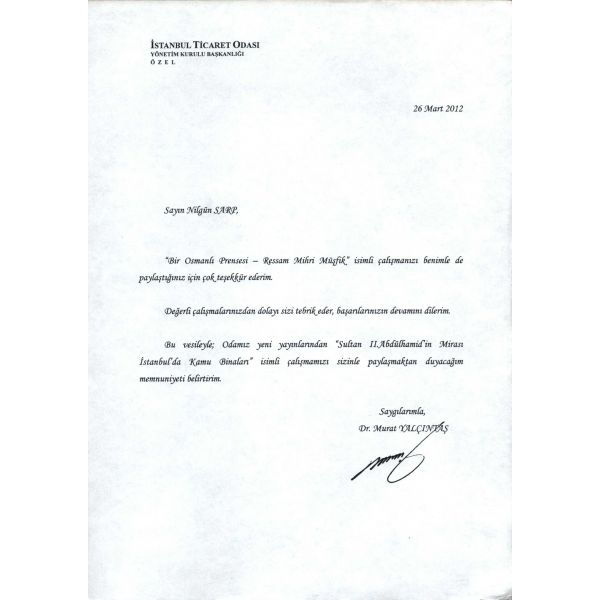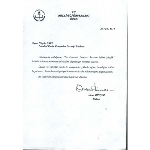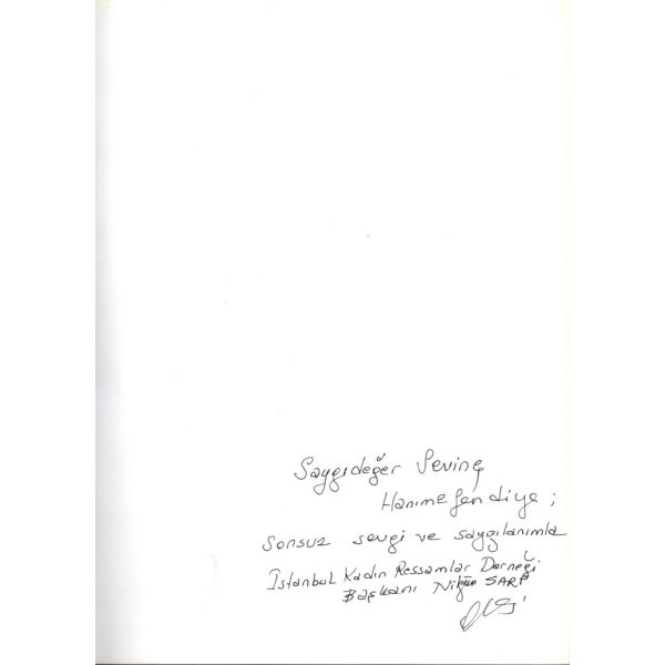 İthaf, "Saygıdeğer Sevinç Hanımefendiye; sonsuz sevgi ve saygılarımla. İstanbul Kadın Ressamlar Derneği Başkanı Nilgün Sarp" şeklindedir. Kitap içerisinde Ertuğrul Günay, Cemil Çiçek, Kadir Topbaş, Yalçın Karayağız, Murat Yalçıntaş ve Ömer Dinçer´in Nilgün Sarp´a gönderdikleri ıslak imzalı teşekkür mektupları mevcuttur.