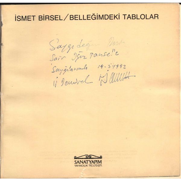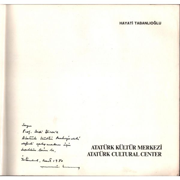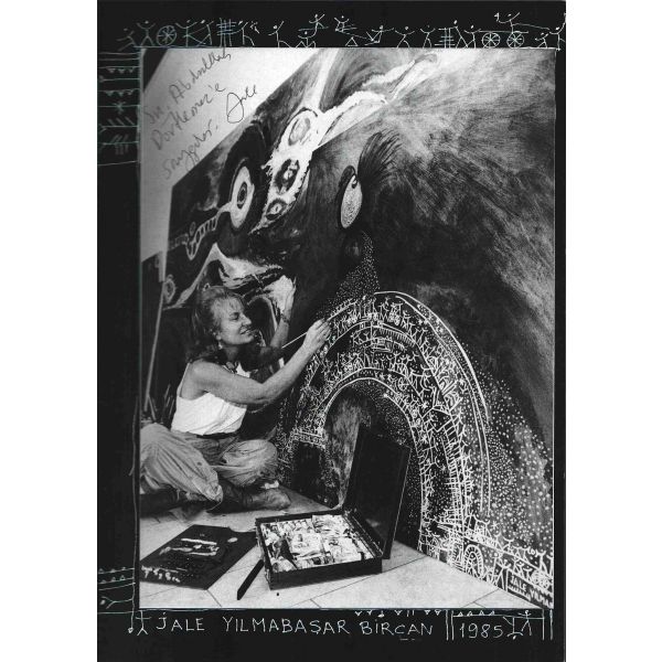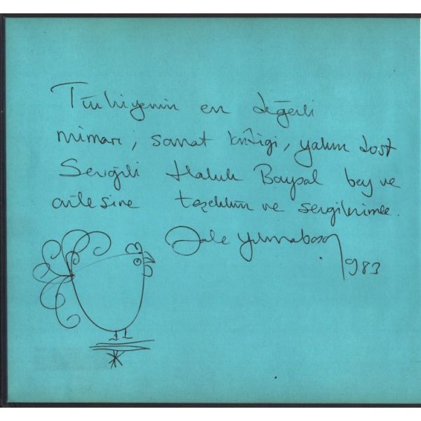 Altında bir çizim de yer alan ithaf, "Türkiyenin en değerli mimarı, sanat kritiği, yalın dost Sevgili Haluk Baysal bey ve ailesine teşekkür ve sevgilerimle. Jale Yılmabaşar - 983" şeklindedir.